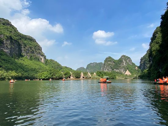 陸のハロン湾といわれる奇岩の間を流れる川をボートでゆっくり進みます。