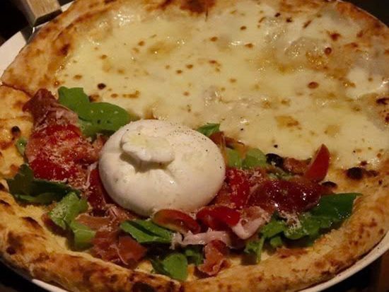 ・【名物!】ブッラータ・パルマハムと4種のチーズのハーフ&ハーフピザ