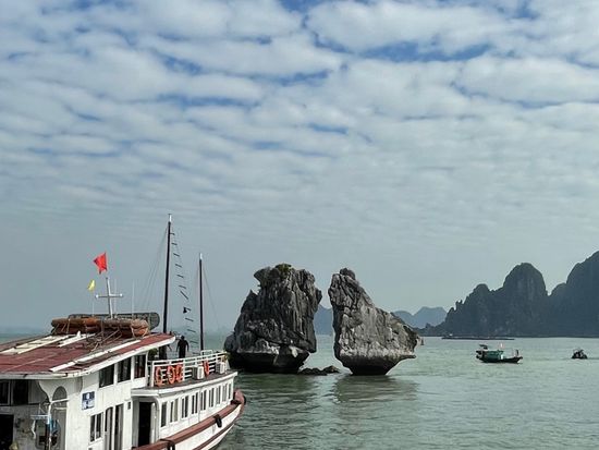 ベトナムの20万ドン紙幣にも描かれている象徴的な奇岩です。香炉の形に似ていることからその名が付き、海上にぽつんと立つ姿が印象的。船上から間近に鑑賞でき、幻想的な景観の中でひときわ目を引く存在です。