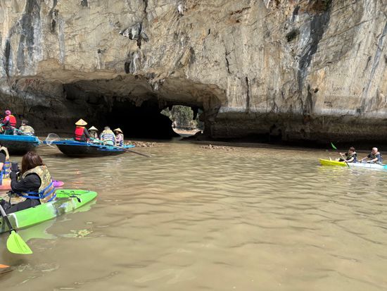 世界遺産ハロン湾日帰りクルーズ 日本人のみの専用船利用!カヤック体験+鍾乳洞ライトアップ<4時間クルーズ/日本語ガイド/昼食/夕食/トレインストリートお送り可>