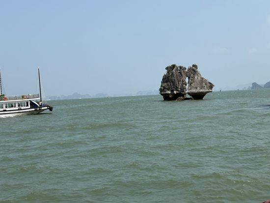 ベトナムの20万ドン紙幣にも描かれている象徴的な奇岩です。香炉の形に似ていることからその名が付き、海上にぽつんと立つ姿が印象的。船上から間近に鑑賞でき、幻想的な景観の中でひときわ目を引く存在です。
