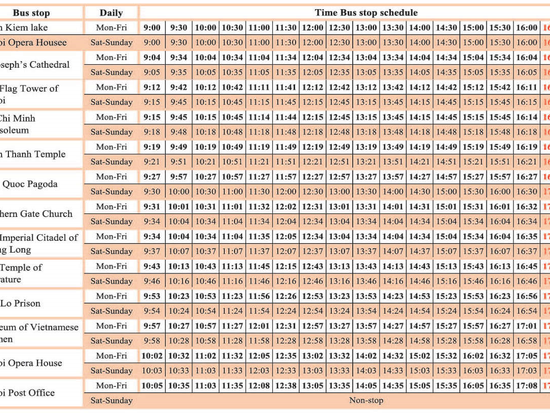 下記いずれの停留所からも1回限り乗降でき、ハノイ1周ツアーをお楽しみいただけます。