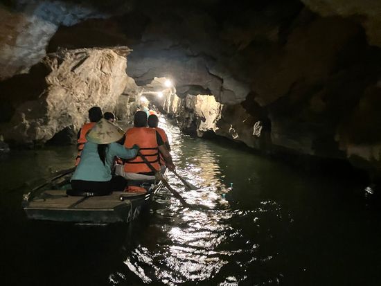 小舟に乗って、水墨画のような世界を遊覧します。奇岩がそびえる風景や洞窟くぐりをお楽しみください。全長300mもの洞窟の中を小舟で通過していく体験は、一生の思い出に残ることでしょう。