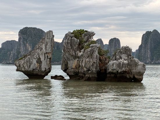ハロン湾到着後、クルーズ船上でハロン湾でとれた新鮮なお魚、エビ、シャコなどの魚介類を使用した豪華な海鮮ランチをお楽しみながら、闘鶏岩、香炉岩、ゴリラ岩 などの名所を観賞します。その後シーカヤックまたは手漕ぎ舟で遊覧し、スンソット鍾乳洞の見学と、ティートップ島の上陸をお楽しみください。