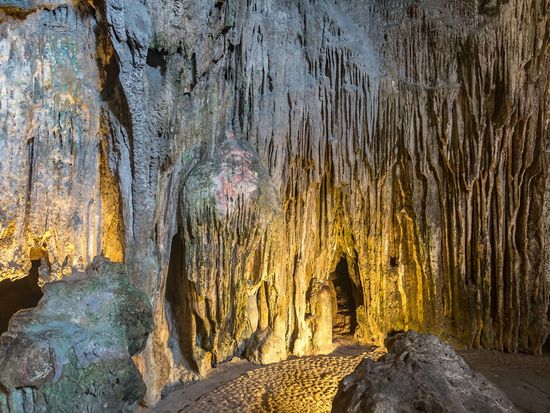 ハロン湾のハイライトの一つであるティエンクン洞窟を訪問。天宮という名の鍾乳洞内は、星座のように各岩の名前がついています。極彩色のライトによって浮かび上がる幻想の鍾乳石の世界をお楽しみください。