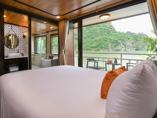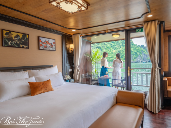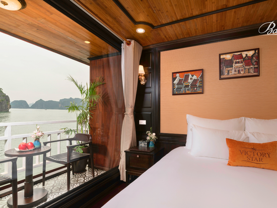 ベトナムの伝統的なデザインを取り入れた「ビクトリースター号」でのラグジュアリークルーズがスタート。4つ星ホテル級のサービスをお楽しみいただけます。