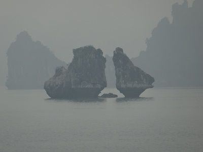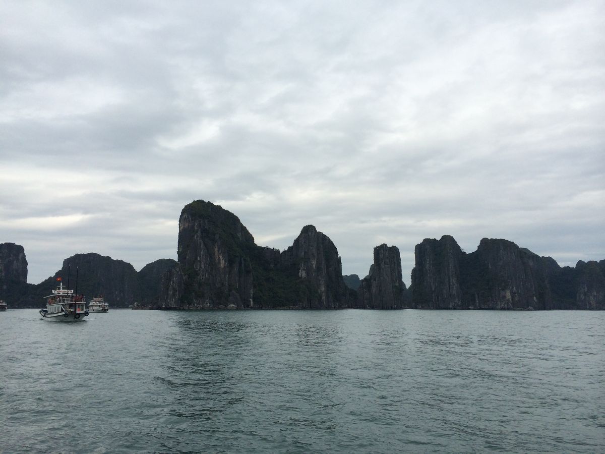 曇りの日のハロン湾の景観は、水墨画に例えられるほど、晴天の日とはまた違う趣のある風景でございます。
