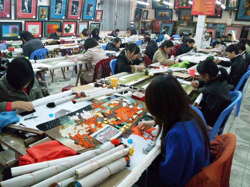 途中休憩で立ち寄る刺繍の絵画の工場?の商品はハノイの日本人がツアーで立ち寄るお店の半額くらいだったなぁ。