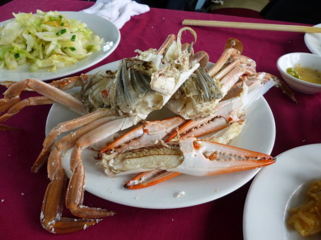 車も快適で、船も貸し切り。船上でのご飯もおいしく、ガイドもつかず離れずのとてもいい感じの人だった。養殖場のカニが想像以上に美味しかった(1杯10ドル)。