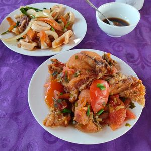 やっと乗船すると早速豪華なシーフードランチ(コレは合格)