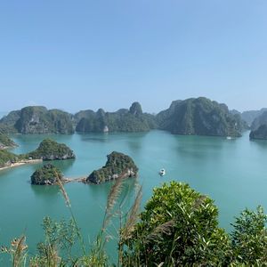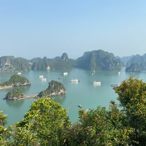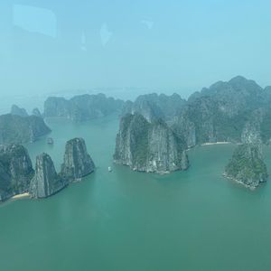山頂からはエメラルドグリーンのハロン湾に無数の奇石が共存する様が見られ、感動です!