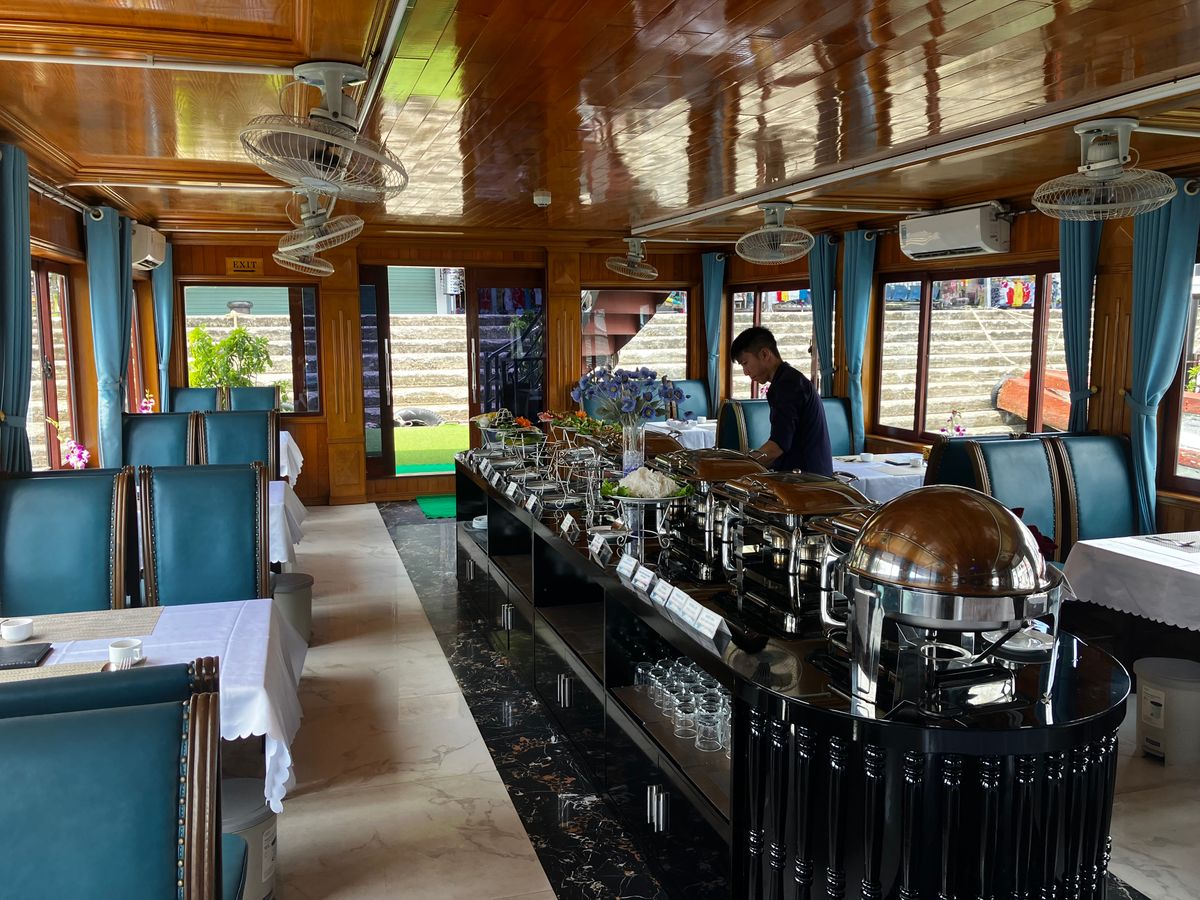 クルーズ内でのランチもビュフェ形式でグループ毎テーブルが分かれていてゆったりと過ごせました(ランチ時のドリンク代別途30k程でした)