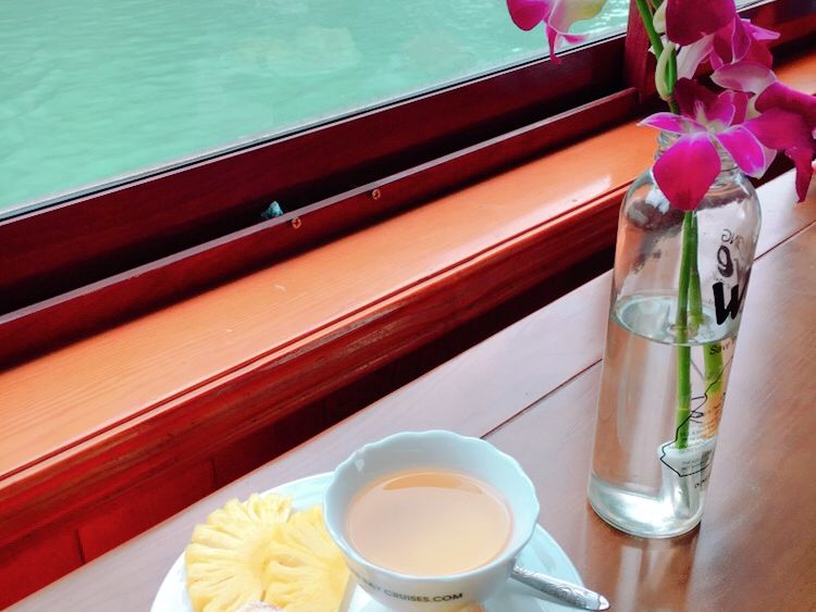 ハロン湾クルーズ船に乗り、船内での昼食ですが、自分の中では、味付けや内容として、まあ普通だと思います。