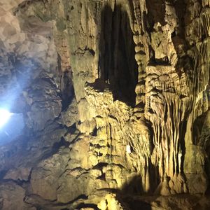 途中船を降り、洞窟へ向かう。洞窟まで階段が続くので歩きやすい靴が良い。私の前行くヒールの靴を履いた女性がこけていた。洞窟は天井が高く見事だった。