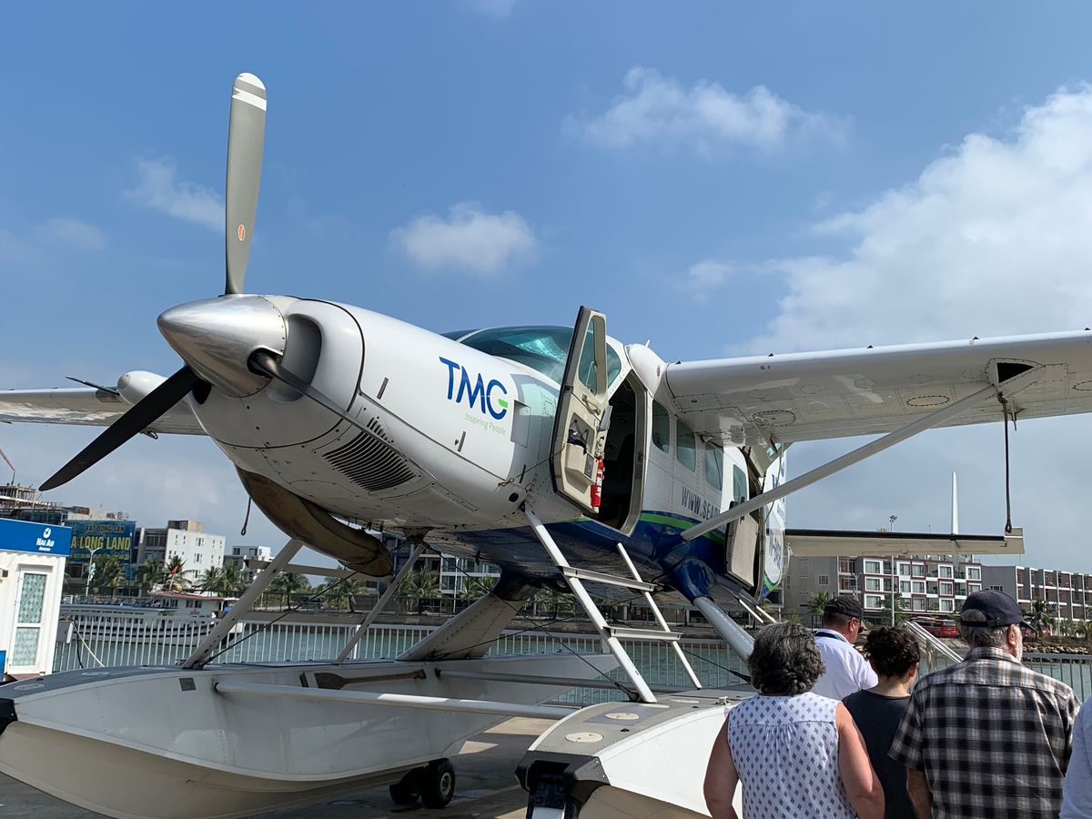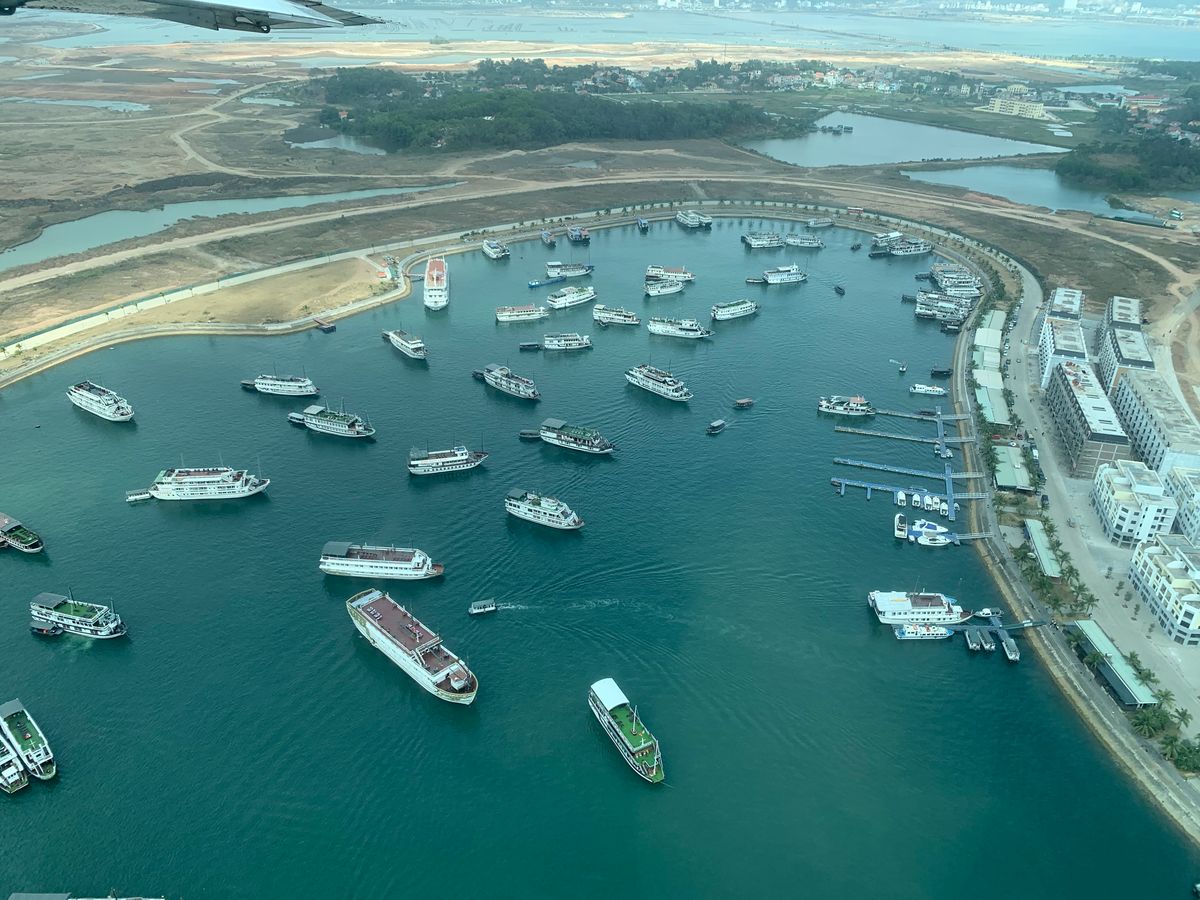 港周辺になると、開発中のリゾート地という雰囲気で、新しい建物がどんどんと建っていて、近い将来はダナンのようなリゾートになるのかなと思わせる街並みでした。セスナに搭乗するまで、ゆったり時間を取って頂いたので、オフィスでおいしいコーヒーを頂き、少し散歩しました。そしていざセスナに搭乗!!の前にとてもユニークな髭を携えたキャプテンからの安全レクチャーがあり、8名搭乗し、離陸しました。セスナの窓からの景色は「海の桂林」と言われる景色全体を楽しむことができ、息をのむほどの絶景でした。