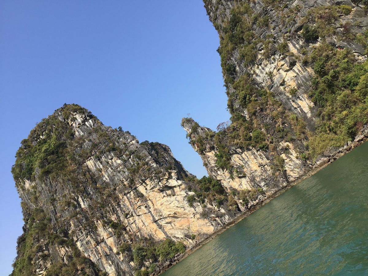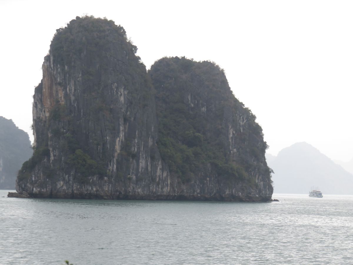 ランチをいただいている間に,船は港から島々のなかに入っていきました。ゆっくりと海面からの景色を楽しむ時間も確保されていたと思います。初めての日帰りでの観光だったのですが、十分にハロン湾を楽しめたと思います。
