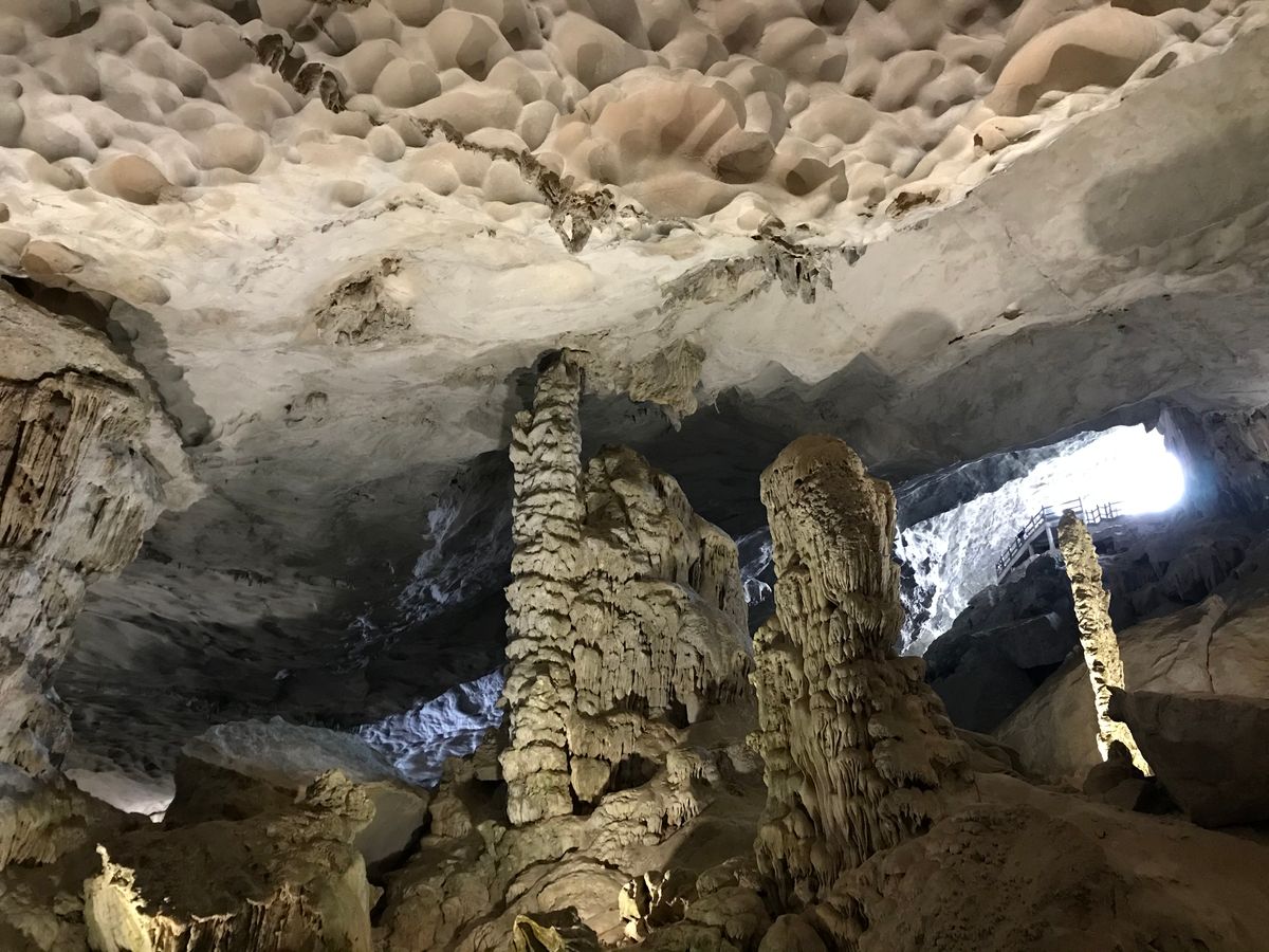 その後、クルーズに乗換え、海からのハロン湾を楽しみました。こちらもまた、同じ目線での風景は目を楽しませてくれるものでした。そして船の海鮮をメインとしたランチは、フォーやブンチャーばかり食べていた私たちにとって、舌を楽しませてくれました。ランチの後の、ティエンクン洞窟もまた想像を絶する洞窟で、自然によって創造された景色にただただ上を見上げていました。