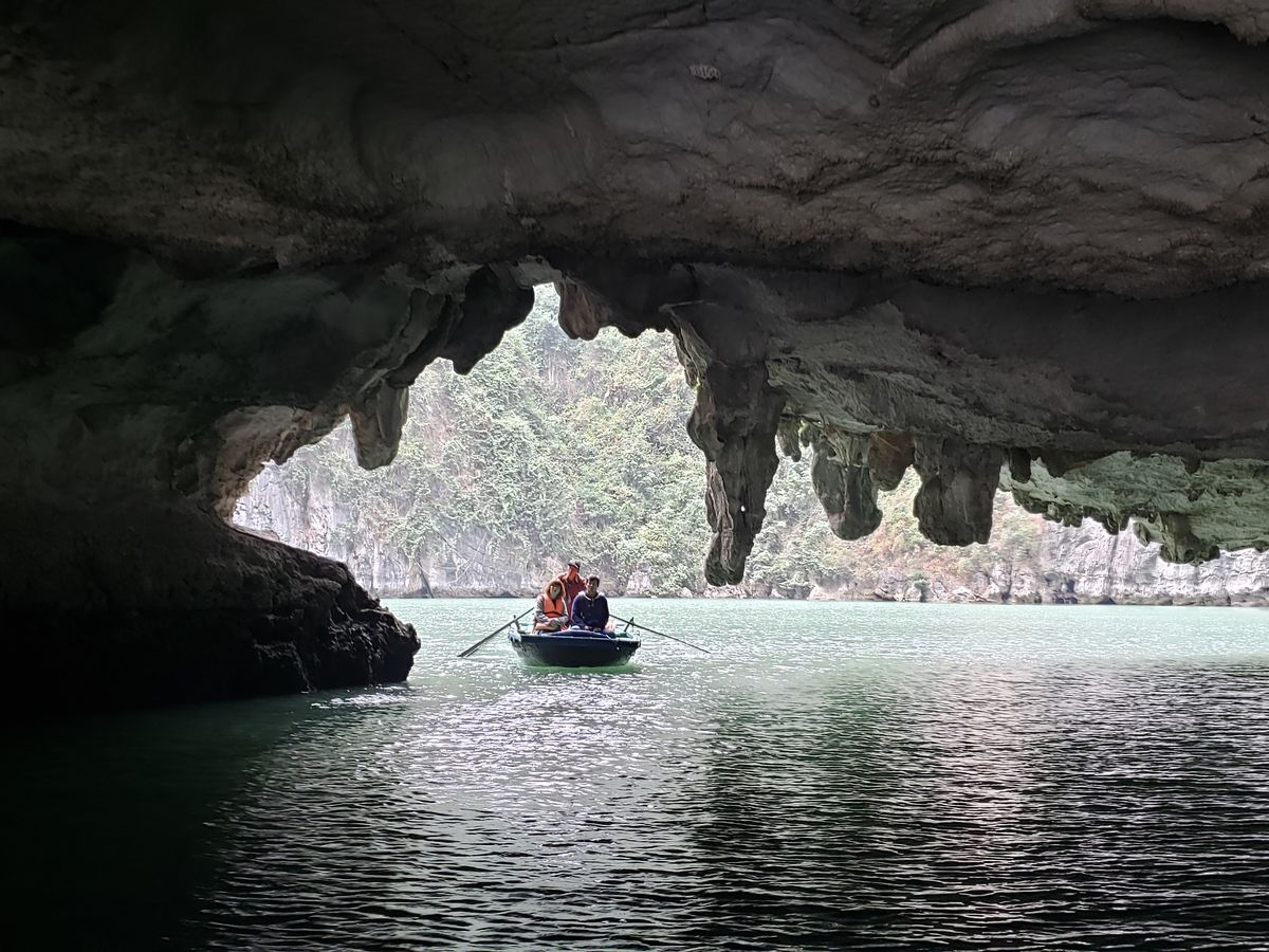ハノイ市内は雨だったのですが、ハロン湾は晴天に恵まれ、船旅も穏やかで気持ち良かったです。ドラゴンボールやパイレーツオブカリビアンの舞台にもなりそうな荘厳な雰囲気は良かったです。ランチも海、川の幸が楽しめました。鍾乳洞も圧巻の景色でした。バスに乗って途中昼寝もできたし、楽しく一日を過ごせました。帰りは水上人形劇場前で下してもらい、旧市街を散策、食事して帰ることができ便利でした。
