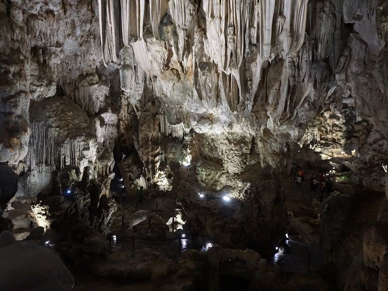 途中船を降り、洞窟へ向かう。洞窟まで階段が続くので歩きやすい靴が良い。私の前行くヒールの靴を履いた女性がこけていた。洞窟は天井が高く見事だった。