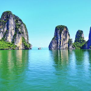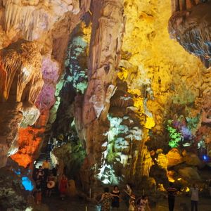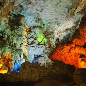 肝心のハロン湾の島々は絶景で、鍾乳洞も感動しました。鍾乳洞はカラフルにライトアップされていて人工物のような雰囲気だったけど。でも全体を通して参加してよかったです。ちなみに鍾乳洞は日本と違ってとても蒸し暑いので扇子や汗拭きシートがあればいいと思います。