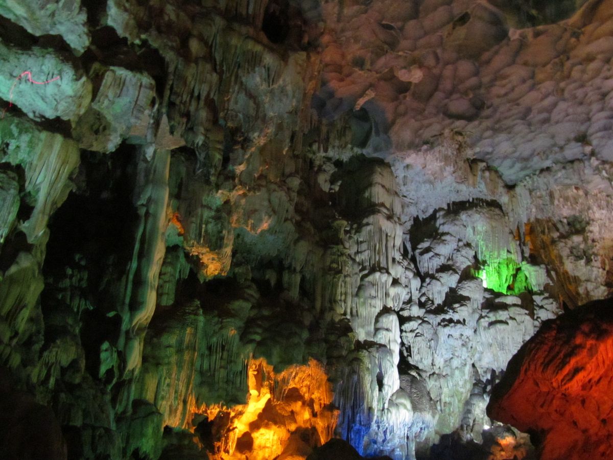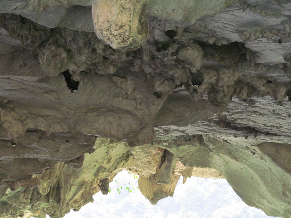 最後に島に上陸して鍾乳洞を見学します。日本の秋芳洞の皿のような鍾乳石はありませんが、色々な石筍、石灰華柱を楽しめます。行った日の天気がよく、洞窟内の天窓のような穴から光が差し込み綺麗でした。