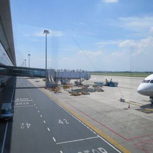関西空港からのジェットスター便で、ハノイ空港の定刻0時55分着が、20分遅れて到着。