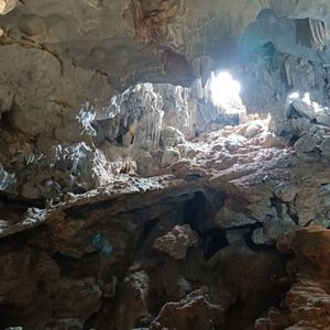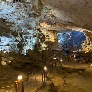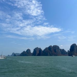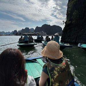 快晴のなかハロン湾に行けてよかったです。海鮮はとても美味しかったです。とくに春巻きが美味しかったです。飲み物は別料金でした。飲み物はスーパーの価格より高いですが、観光地にしては割とリーズナブルなほうです。(ぼったくりくらいの価格ではありません。)ボートは1時間自由に漕ぎました。水着を着ましたがあまり慣れませんでした。鍾乳洞はとても大きく綺麗でした。中はとても広く天井も高いです。
