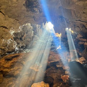 鍾乳洞を1箇所巡り、たまたま?ですが光の筋が差し込んでいる場所がありとても綺麗でした!