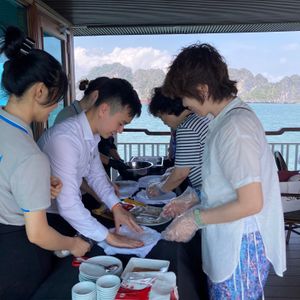 その後に訪れたハロン湾では、非日常のラグジュアリーなひとときを過ごすことができました。クルーズ船ではアフタヌーンティーやサンセットを楽しみ、ジャズが流れる穏やかなデッキでゆっくりとした時間を過ごすことができました。