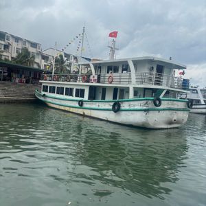 バス移動グループと合流して、豪華(?)客船と言われる船に乗船し、出航後、直ぐに提供される豪華(?)海鮮料理と言われる料理が出される。狭い船内のキッチンで作られたからか、或いは、海鮮の鮮度に問題があったのか、ほとんどのテーブルで多くの料理が残されていたのが、印象的だった。