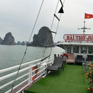 世界遺産のハロン湾クルーズは見どころ満載でした。またガイドさんの語りが面白く行き帰りのバスでも退屈する事はありませんでした。昼食はもう少し豪華かな?と期待していましたが、ちょっと期待外れでしたが、海老はおいしかった 。帰りはトレインロードで下ろしてもらってちょうど電車が通過するところもカフェでコーヒーを飲みながら見ることができました。