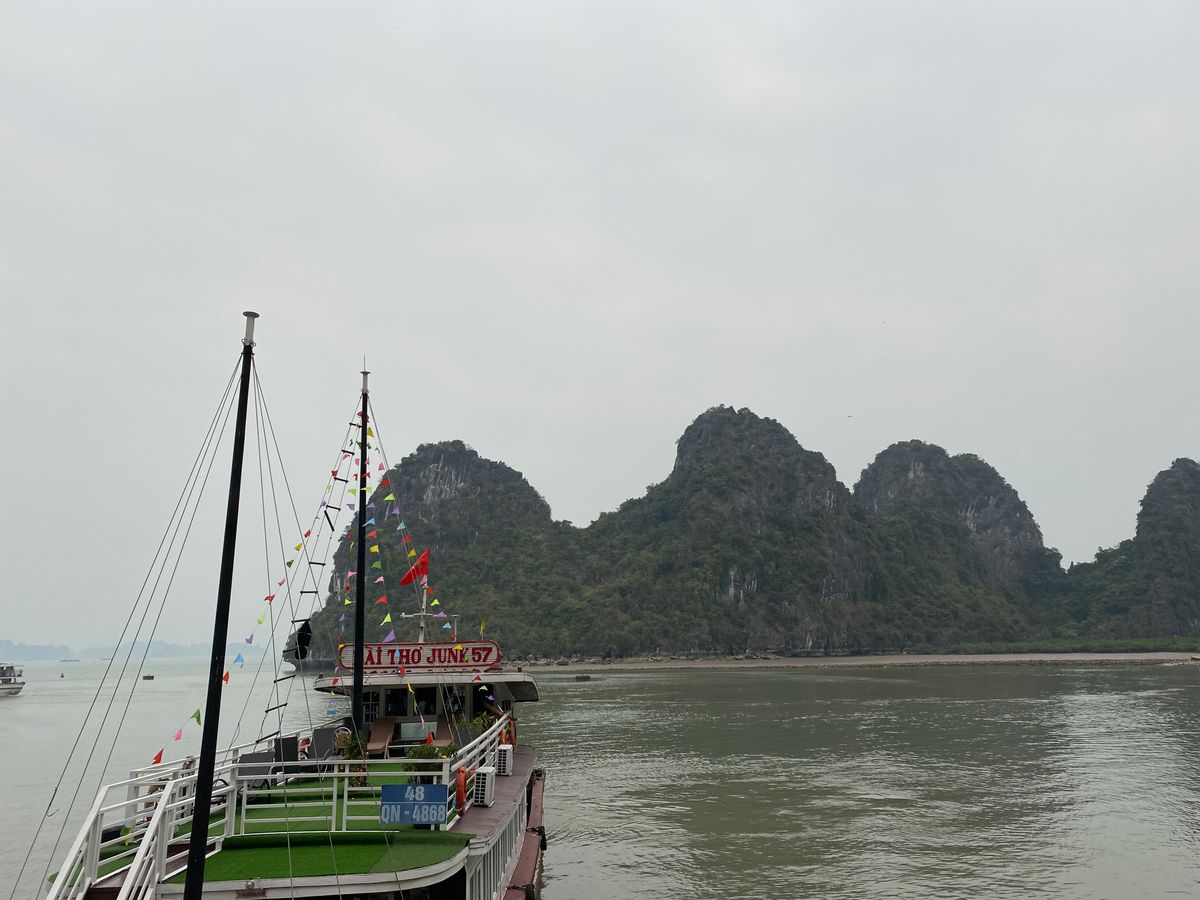 まずハロン湾で獲れる真珠の物産展に行きました。説明をきいて自由時間。お金に余裕のある方はショッピングしていましたが、あまり余裕のない私達にとっては退屈でした。ハロン湾についてから船に乗ってランチを食べました。食事は普通。特に美味しいわけでもなく。その後上陸した島の世界遺産の鍾乳洞は圧巻でした。見る価値があります。階段部分が多いですが、歩きやすいので体力に自信のない方でも問題ないです。ハロン湾でスピードボートに乗るオプションがありますが、お金に余裕があればぜひ乗ってください。ひとり250000ドンでした。海外ならではのスリリングな体験ができます。その後ティートップ島へ上陸しました。片道10分ほどの階段を登ったらハロン湾を見渡せる展望台があります。船だらけでしたが綺麗な眺めでした。帰りは夕日を眺めながらティータイムの予定でしたが天気が悪くて夕日は全く見えませんでした。仕方のないことですが、人数が多いし団体客がいたので友人と2人で参加したらちょっと肩身が狭かったです。1人で参加するのはちょっと気まずいかも、、(英語が得意なら同じくひとり参加の方と仲良くなれるかもしれません)
