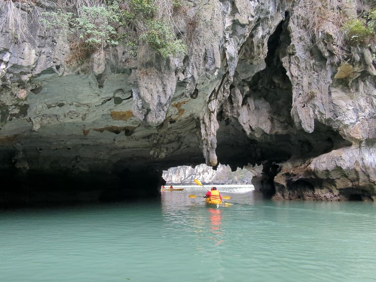 カヤックやってみたかったけど、かなり濡れるというので、船頭さんに漕いでもらう手漕ぎボートにのりました。船頭さんのキャラクター次第で、写真たくさん撮ってくれる人や歌ってくれる人、色々でした。