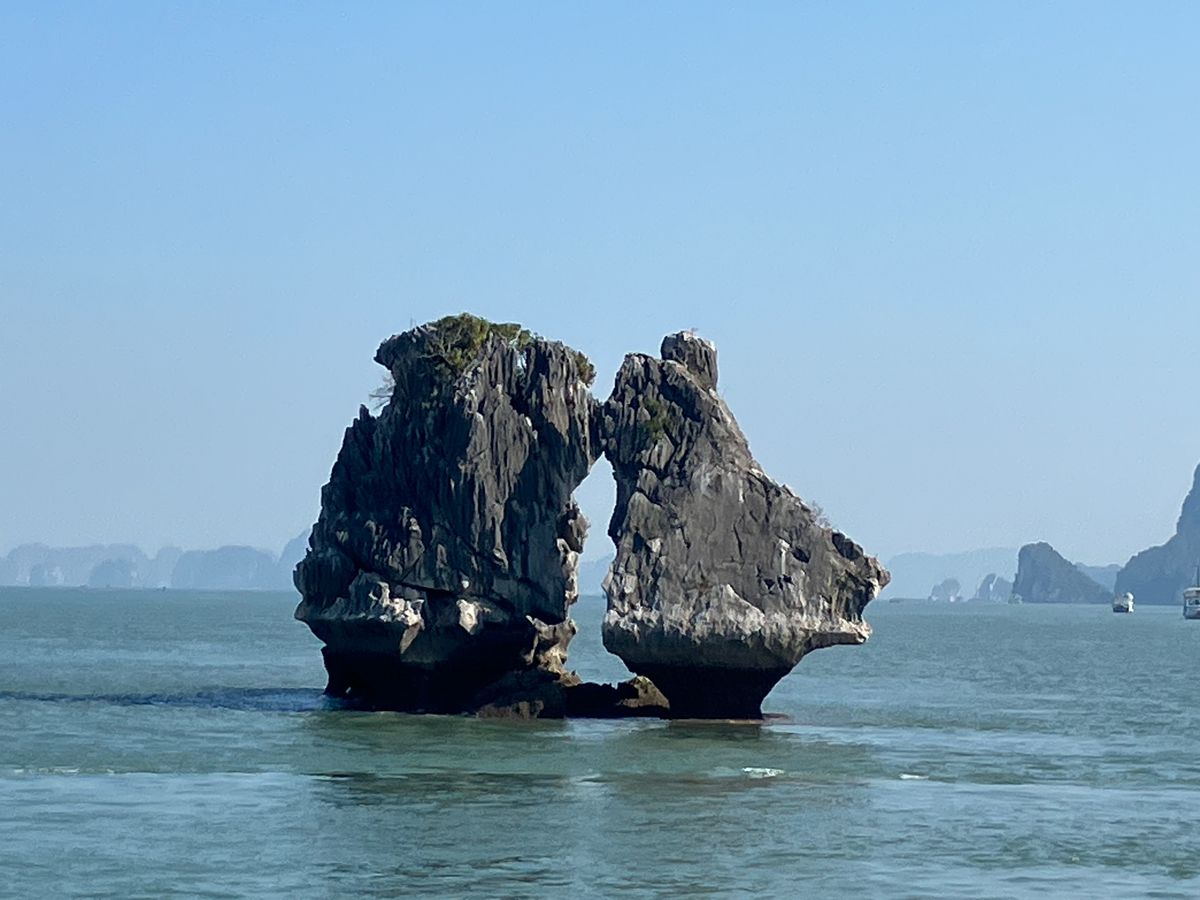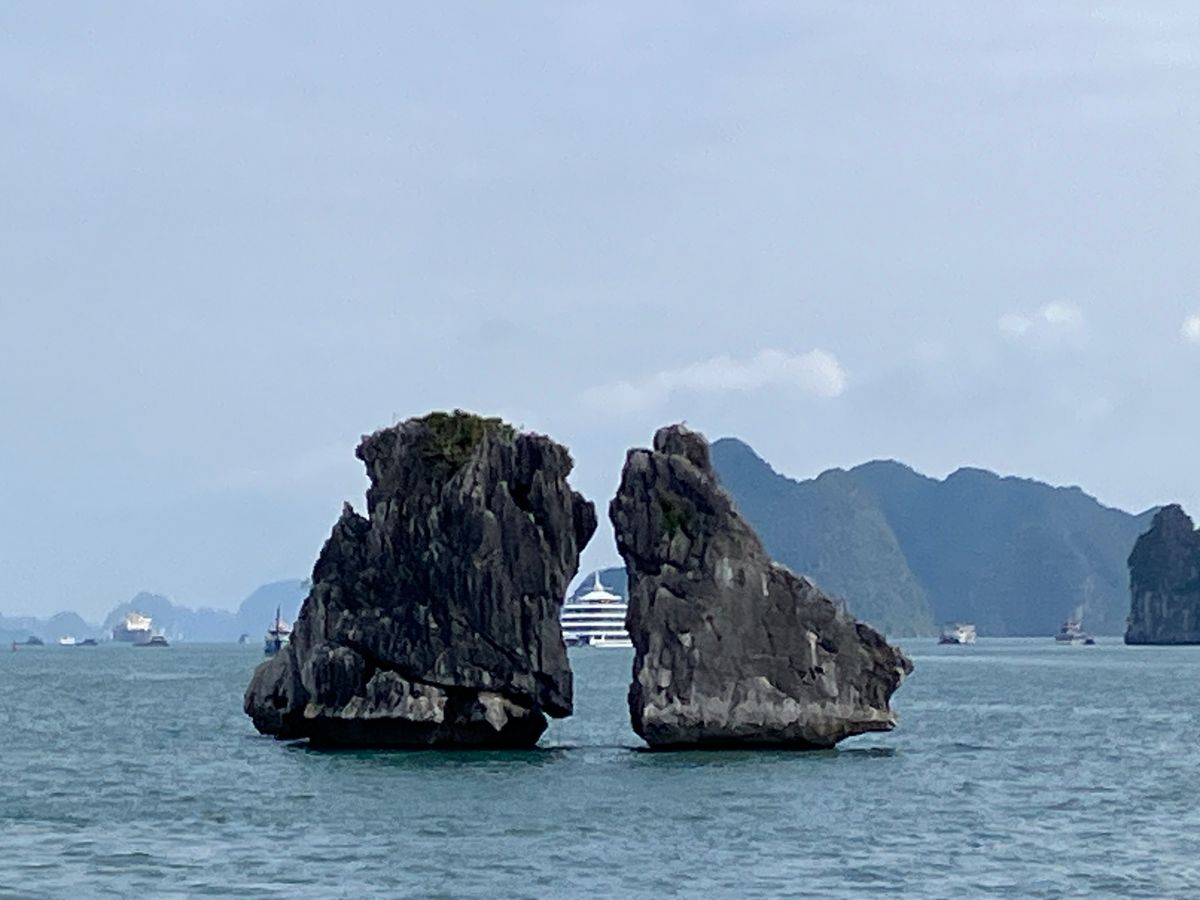ハロン湾は2000湖もの岩が並んでおりその中に〇〇に似ている岩や、ベトナムの20ドン札に描かれている岩もありデッキに出て楽しめます。途中船頭つきの船か、自分で漕ぐカヤックで水辺から岩を眺められます。