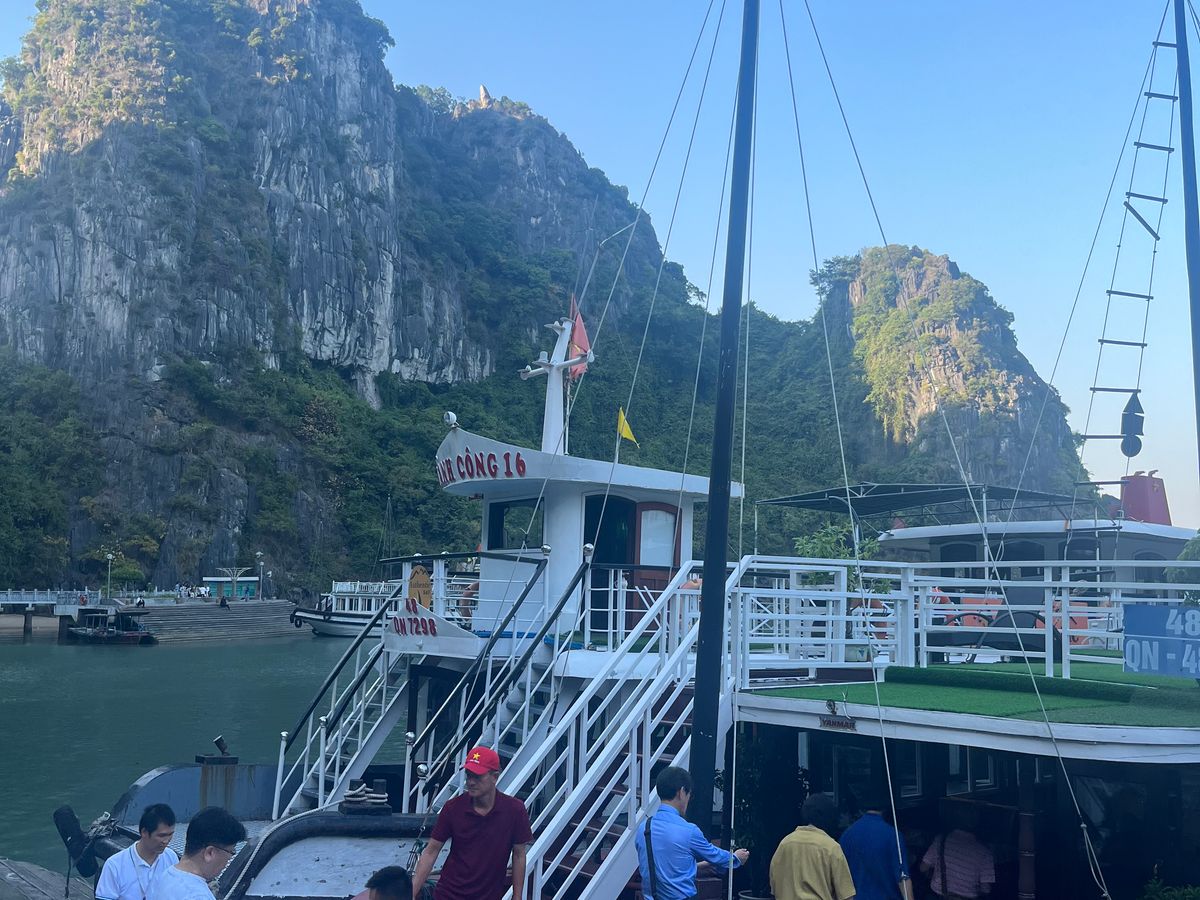 ハロン湾に待っていたのは、リニューアルしたばかりのとても美しい観光船!とてもラッキーなことに、この日の乗客は私たちだけでした。