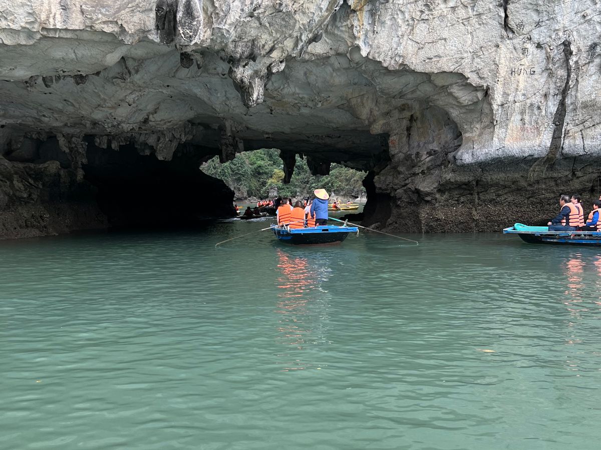 初めてのハノイ、ツアー参加に緊張しましたが、待ち合わせ10分前にはお迎えに来てくださってて安心しました。移動の車は豪華で3時間位かかる道中もリクライニングやフットレストが有り、快適でした。この時点で貸切。途中、お土産屋さんにトイレ休憩しました。何も買わなくても大丈夫でした。そして船着場に到着、船に乗るも、ここでも貸切でした!ラブラブカップルには良いと思いますが、母子の旅には少し淋しい気もしますが、まぁ、でも、良いひと時を過ごさせて頂きました。(ガイドさん、二つあるトイレも貸切ですよ!と。)