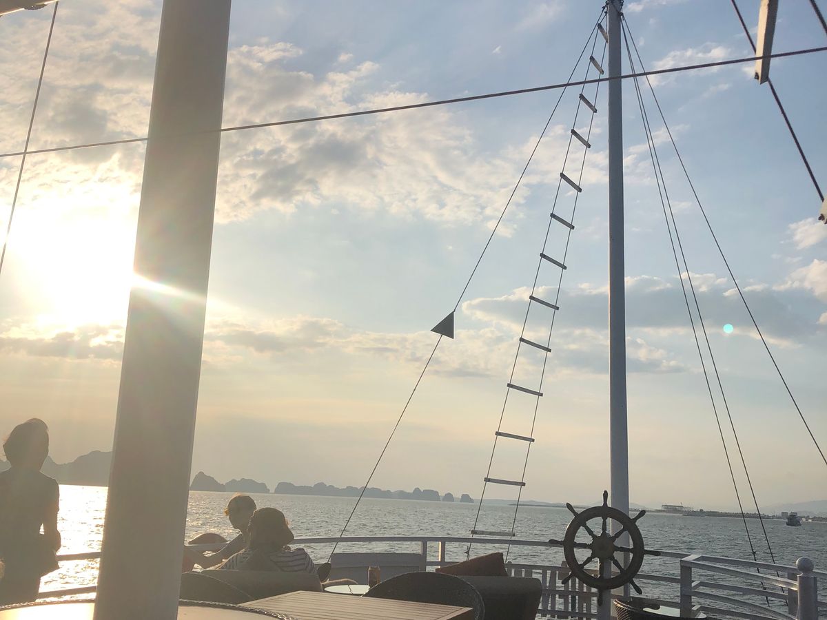 また、夕方は私達は真珠ファーム見学やカヤックをせず、デッキの上でゆっくりしていたためハロン湾の島々の間からゆっくり沈むサンセットも楽しむことができました。