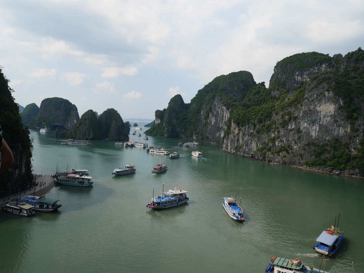 ハロン湾に着くと船がたくさん見えたので自分が乗る船はどれ!?と思いながらわくわくしてました。人気スポットなのだと実感。