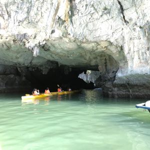 途中船を降り、洞窟へ向かう。洞窟まで階段が続くので歩きやすい靴が良い。私の前行くヒールの靴を履いた女性がこけていた。洞窟は天井が高く見事だった。