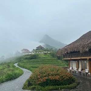 1泊2日でしたが、1日めは視界不明な霧と小雨、2日目は曇りでした。晴れていたらホテルの感動が違うと思います。1日めのトレッキングは赤ザオ族の村見学でしたが、泥まみれの田んぼの畔を歩くだけで、村らしい村はなく残念でした。赤ザオ族も商売のために着いてくる人だけでした。ただ、2日めは、ちゃんと村の家の中を見学できて、壮大な棚田も見れて1日めより充実した内容でした。また曇りでトレッキングは楽でした。晴れていたら暑いし日に焼けたと思います。ランチは地元の食堂みたいな場所でしたが、少々ローカルすぎて犬が足元をうろうろするなど衛生面が気になる人は気になると思います。