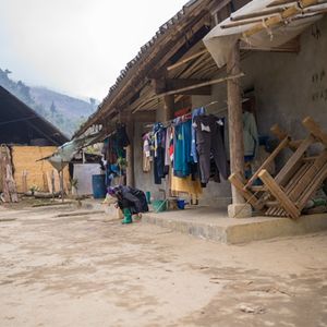 続いてカットカット村散策。階段をどんどん下っていくので帰りが心配になりましたが、終盤は上りです。歩きやすい履き慣れた滑りにくい運動靴をお勧めします。黒モン族の村ですがガイドさんによると近年お土産屋さんが増えて誰だかわからない人達が商売してるとの事でした。そんな中ガイドさんが気を遣ってくれてモン族の機織り、藍染めの人たちのお店(と言うより民家の軒先)に連れて行ってくれて、手作りのお土産を買うことができました。