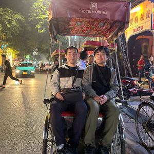 最初から最後まで私たち夫婦2人だけのツアーは、贅沢で落ち着けて、ガイドさんもハノイの景色も1人いや2人じめでした。まず始めに訪れたのは、チャーカー料理の店。さすがミシュランを取ってるだけあり、料理も店の雰囲気も客層も良かったです。全くナマズ臭さがなくて上品な味。なにより、ガイドのザンさんが、テーブルで調理?までしてくれて、食べ方も教えてくれて、なんと関係ない隣の人たちにも教えていました笑。次は待ちに待ったトレインストリートへ。線路ギリギリに置かれたテーブル席で、エッグコーヒーとソルトコーヒー(料金込み)を飲みながら、列車がスレスレに通るのを見るのはドキドキわくわくします。2回、短いのと長い列車の通過を見れました。その後、シクロ体験。15分は乗ってたと思います。11月の下旬の夜風は冷んやりと心地よく、少し上から見る問屋街や夜市は楽しかったです。シクロの脇をビュービュー通っていくバイクや車にスリルを味わえます。降りた後は、ナイトマーケットを散策。初めてのベトナムに慣れない私たちをガイドのザンさんは安全に連れてってくれました。ザンさん、最高です!ありがとうございました。一番の旅の思い出になりそうです。