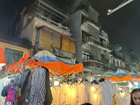 金曜の夜だったので、ナイトマーケットに連れて行ってもらいました。まずハノイの車とバイクと通行人が信号もなく入り混じる道路を渡るのは危なく、ザンさんがいれば後ろに張り付いて渡れる!これは1番の安心!!