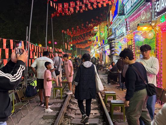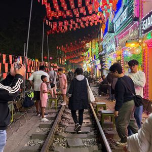 ナイトトレインストリートは煌びやかで非日常的愉しさがあります。ちょうど列車が通るタイミングだったので、とても興奮しました。すぐ目の前を通り過ぎるスピードは迫力ありました。おすすめです(* 'ᵕ' )☆