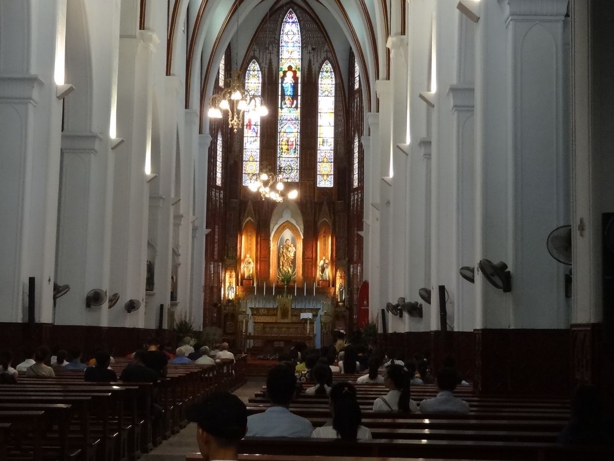 日本語対応のガイドさんでしたが、最初から何かめんどくさいような態度・応対で、「これがJTB?」という感じでした。チャーターの時間が迫って、最後の観光地「タンロン遺跡」からホテルへ帰る途中、「大教会は前からでも通って観れますか?」と尋ねたところ返ってきた答えが「偶然でも無理です」。その後、2日間ハノイに滞在し、地理感も分かってきだしてタンロン遺跡からホテルへの帰り道と方向と同じで「なんや、少し回り道をすれば行けたんや」と。結局、滞在のホテル(ホテルニッコーハノイ)から10分程の大教会へは後日、タクシーで現地まで行き、観光しました。