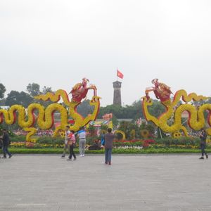 2つ目は、タンロン遺跡(世界文化遺産)。端門の楼閣、敬天殿の龍の階段。各時代の王朝の中心がここにあったとの説明でした。歴代ベトナム王朝について、敷地内の小規模な博物館内でガイドさんから説明がありました。戦乱が相次ぐ国で、けっこう複雑な変遷を経てきたそうです。当方、この国の歴史について事前に何も調べていなかったことを少し反省。王朝が変わるたびに破壊が行われたため、古い施設は、あまり残っていないそうです。龍の階段の中央は王専用だったとのこと。