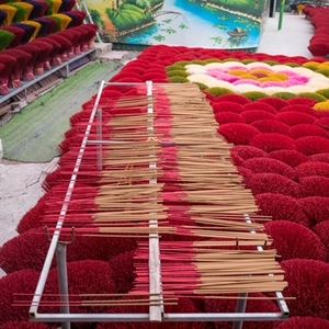 線香村まで距離がありますので車での移動時間が若干長いですが、思ってたよりはるかに色彩豊かで美しく、観光事業化されていると知っても来て良かったと思います。村では竹を細く加工して着色するまでで線香としての加工はまた別の場所で行ってるとのことでしたが、実際に線香加工も見せていただきました。一通り見たあと、ガイドさんが村のちょっと奥まで連れて行ってくださり、実際に竹を手作業で加工している所も見ることができました。