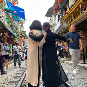 少人数に対してガイドさんが、近い距離にいて街歩きをできるので、安心しながら自分達だけでは行けないできない経験をできました。写真も撮って貰えるし、アオザイを着て、名所を巡り歩くのは、良い思い出になります。名物の列車が通る所では、横にあるカフェでの飲み物代も、料金に含まれていました。名物のエッグコーヒーも、あのロケーションで飲むと格別でした。