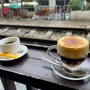 最初にトレインストリートに行って、コーヒーを飲みながら列車が通過するところを見ました。朝の空いている時間で堪能できました!!