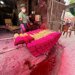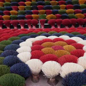 シルク村、良い意味で予測を裏切られました。伝統的な地場産業の村、蚕から糸を紡ぎ生地を織る工程。興味深く見学です。線香村はカラフルで楽しい、観光客の大半は欧米系の皆さんでした。